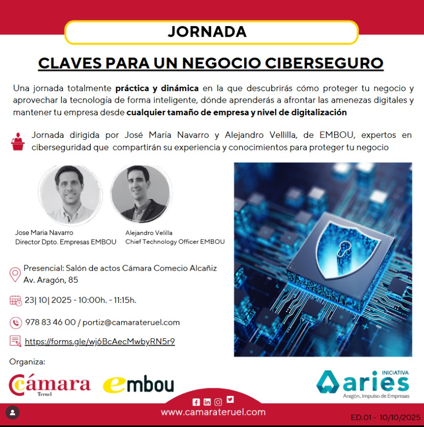 Nos han informado de una jornada que puede resultar muy útil para cualquier negocio que quiera reforzar su seguridad digital. Se trata de la sesión “Claves PRÁCTICAS para un negocio CIBERSEGURO”, impartida por EMBOU en colaboración con PUYO Área Tecnológica.